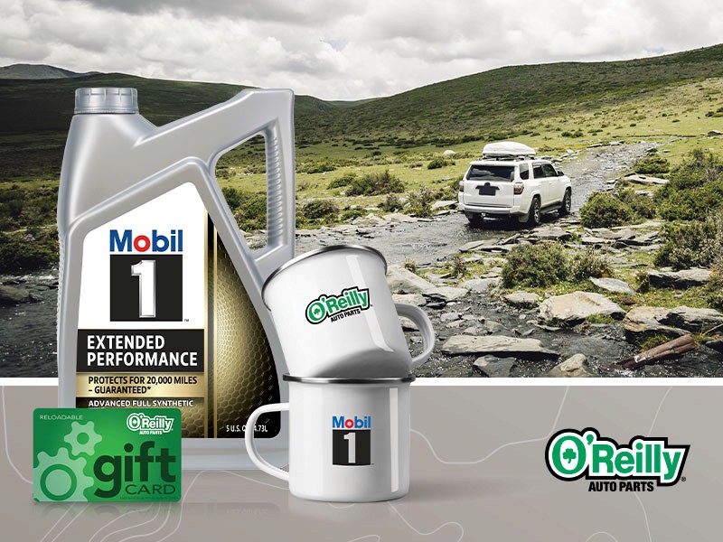 Winter is in the rearview, and spring adventures are calling. But before you set out on the open road, stop by O'Reilly Auto Parts to gear up and go further with this exclusive offer. Take home a pair of free camp mugs and a $10 O'Reilly gift card when you buy 5 qts. of Mobil 1 motor oil. Keep your engine running like new, keep your morning cup warm, and keep a little extra money in your pocket.