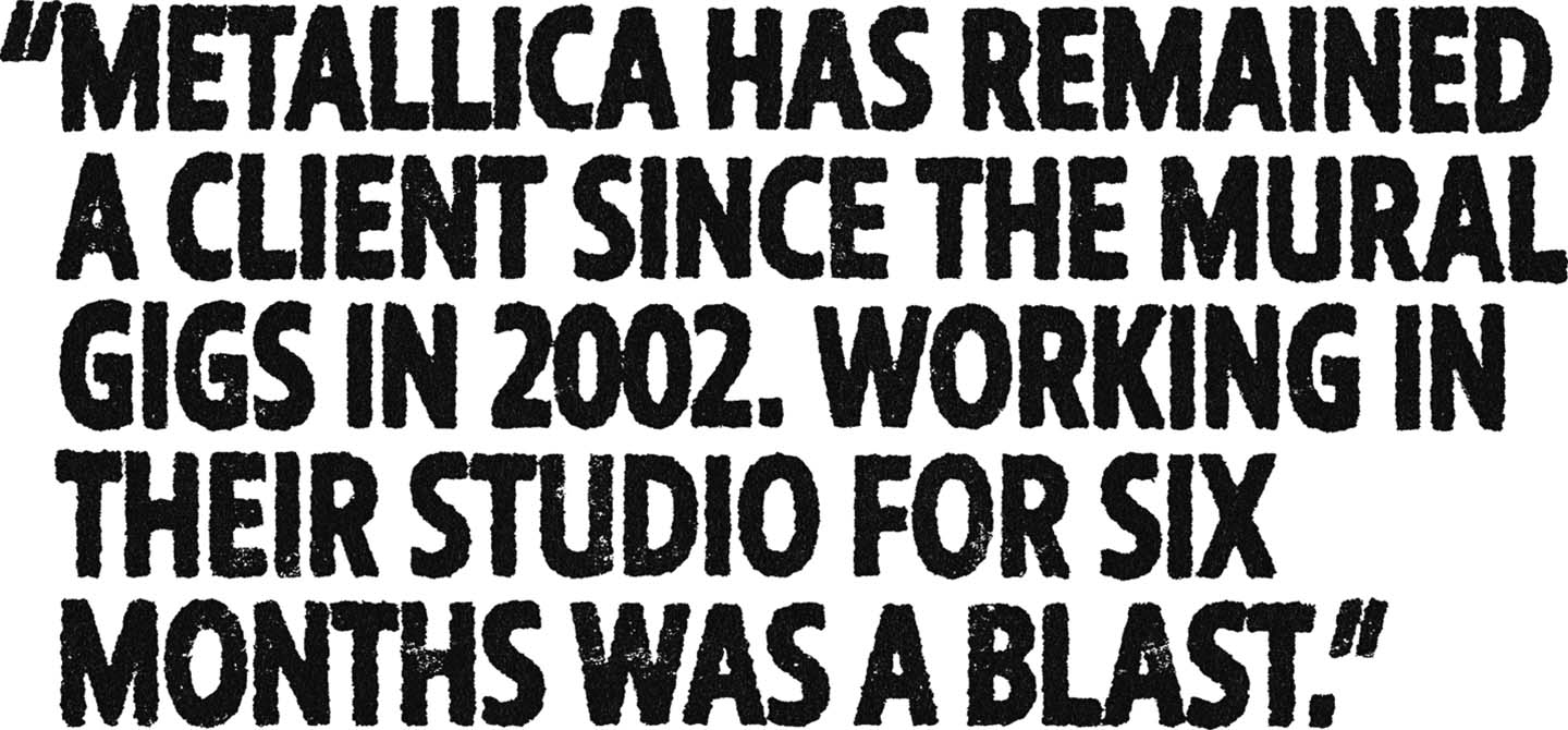 Music was another huge influence—lots of punk bands, metal, rock, and ’80s hip hop. By the time Metallica asked me to do art for them, my work was already pretty well known in underground pop culture and garage rock circles.